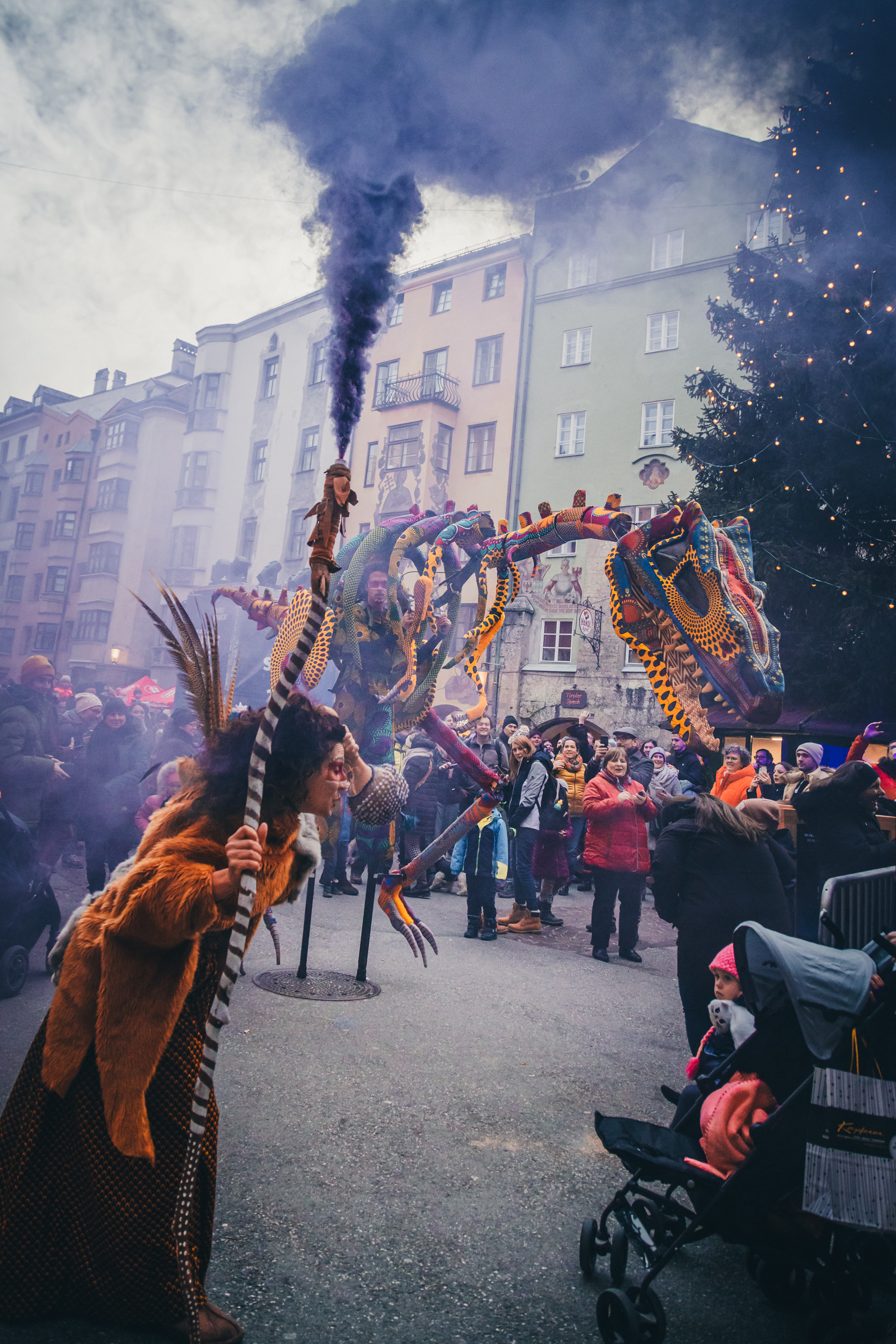 Schon einen Tag früher am 30.12. konnten die Jüngeren beim Zwergerlsilvester den Jahreswechsel feiern. Rund 5.500 BesucherInnen nutzten das milde Wetter und kamen in die Innsbrucker Altstadt um dort bei verschiedenen bunten Spiel- und Bastelstationen einen unterhaltsamen Nachmittag zu verbringen. Highlight war sicherlich die „feurige“ Abschlussshow auf der großen Bühne vor der Hofburg. Spektakuläre FeuerkünstlerInnen und Effekte sorgten für Wow-Momente – nicht nur beim jungen Publikum – und ließen den Tag gebührend ausklingen.